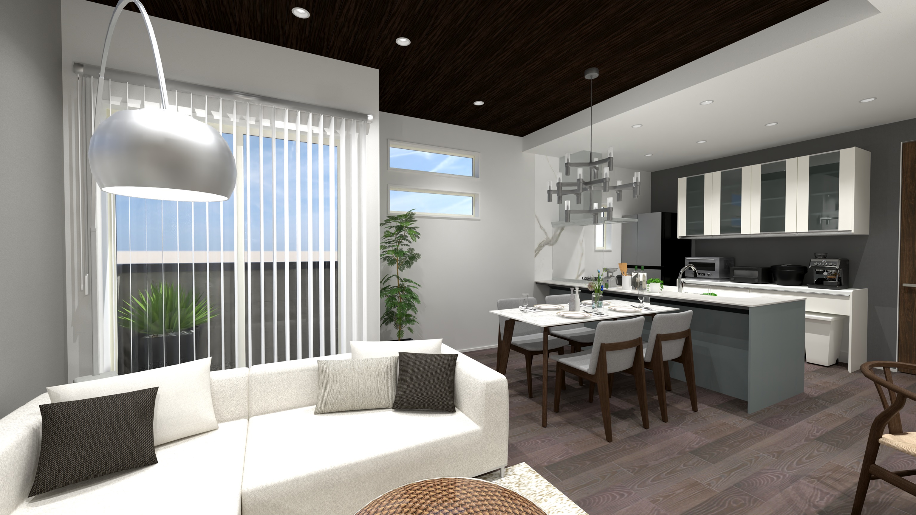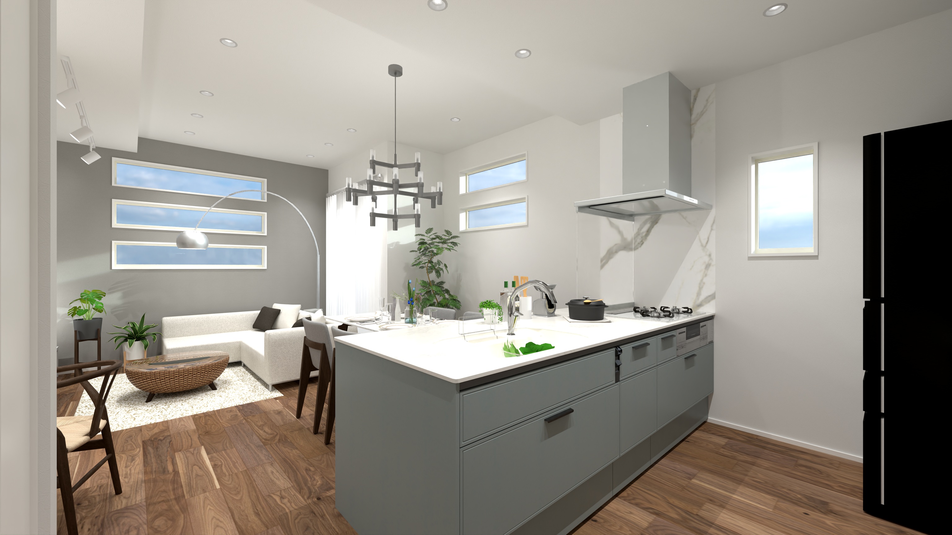 袖壁を無くし、開放感を際立てたペニンシュラ型のキッチンを採用予定。