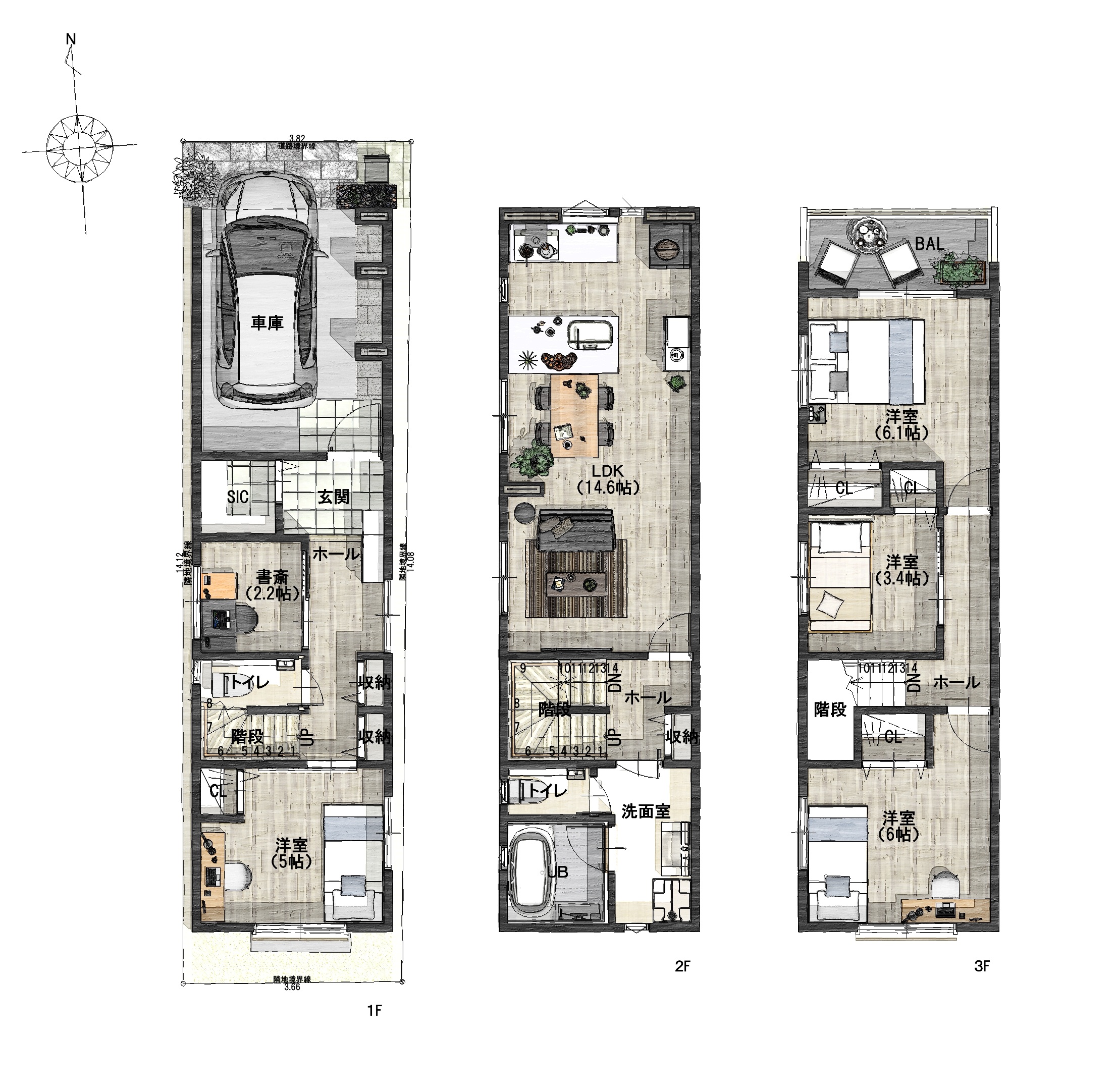 ・敷地有効面積52.84㎡(約15.98坪) ・延床面積97.57㎡(約29.51坪)