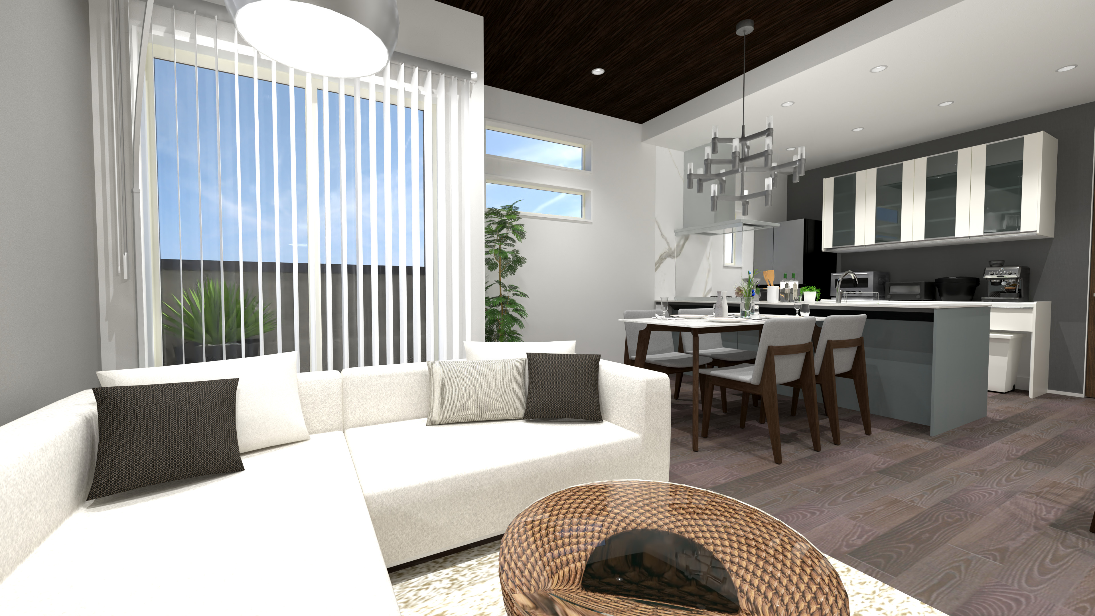 【完成予想パース】見上げるたび、心安らぐ。LDKに温もりを添える、木目天井の心地よさ。