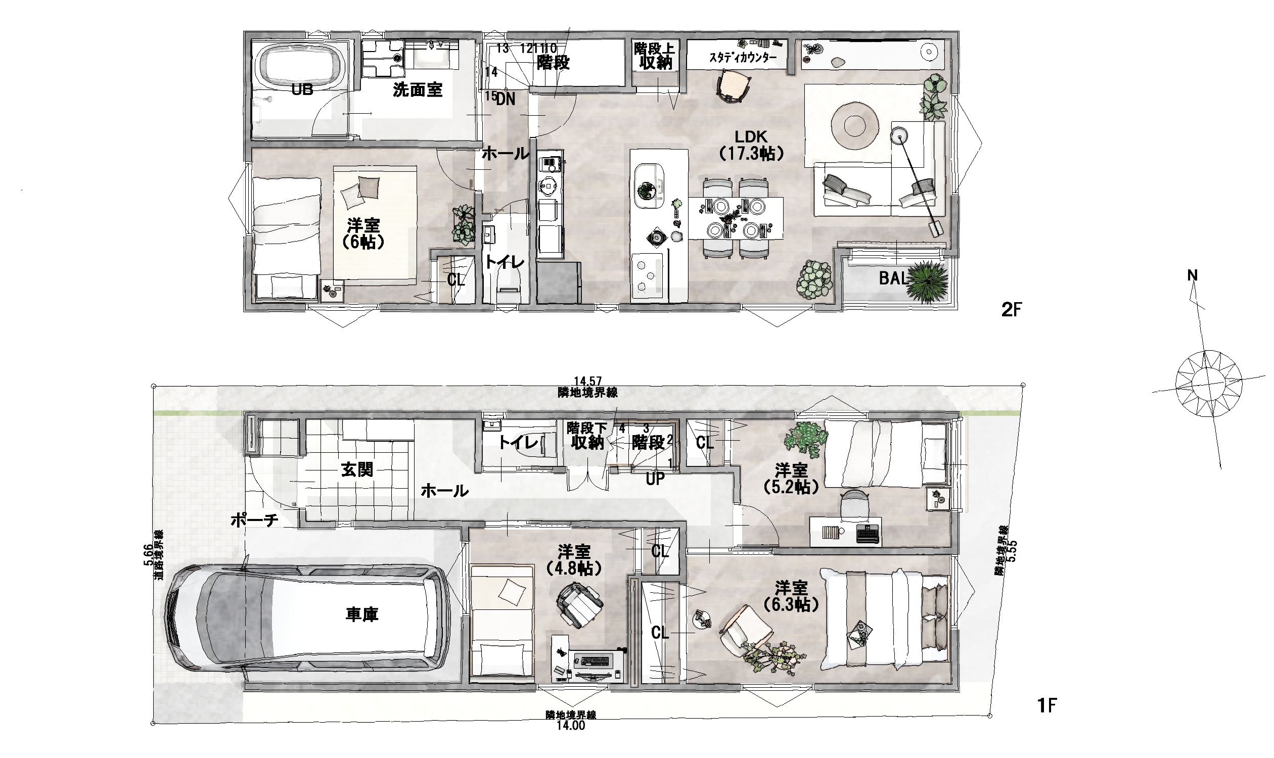 | 物件名 | 【N・ist 晴明通】東西の開放空間による採光と通風、間口も広い2階建ての新築邸宅 |
